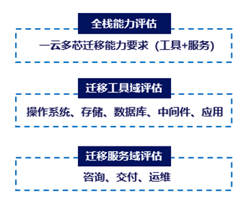 一云多芯迁移能力评估主要内容包括工具和服务两大方面八大模块。评估对象包含迁移工具方和迁移服务方,本评估为分级评估(基础级-增强级-卓越级),参评单位可进行全栈或分模块任选组合进行参评。