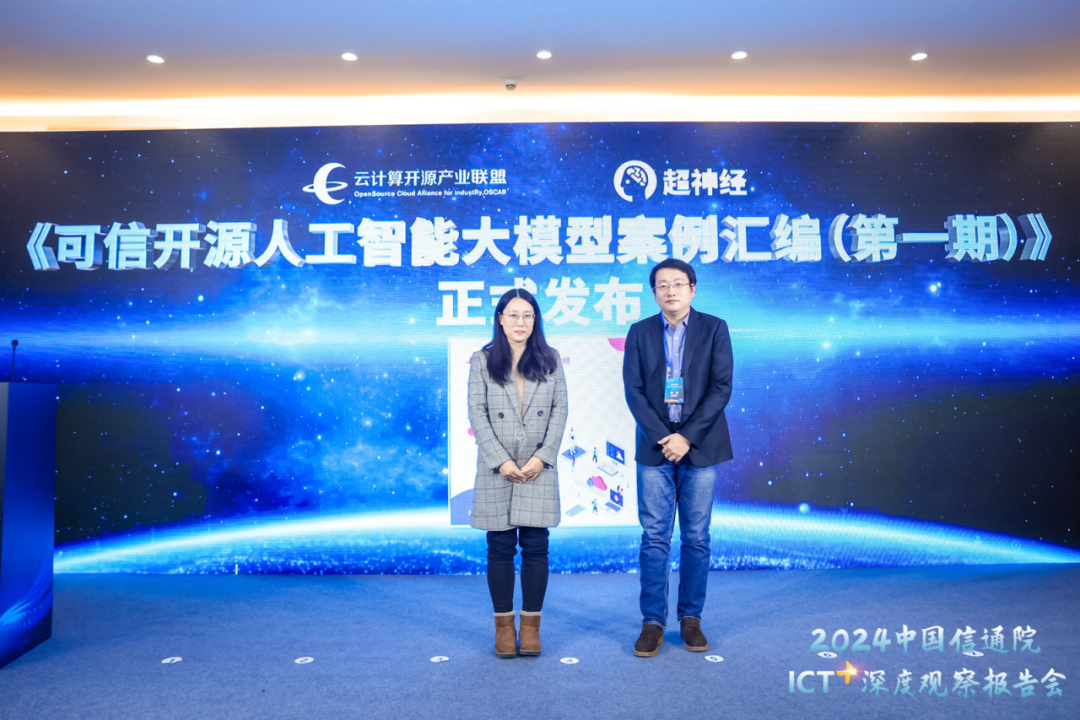 为进一步引导开源大模型产业规范发展,本次会议正式发布《可信开源大模型案例汇编(第一期)》案例,旨在洞察开源人工智能大模型应用场景,梳理开源人工智能大模型的开源成熟度,提升开源人工智能大模型的创新发展。中国信通院云大所开源和软件安全部高级业务主管张一阳就《可信开源大模型案例汇编(第一期)》进行解读。通过调研国内开源大模型的技术细节、应用场景、商业模式、应用治理、发展趋势等,关注开源大模型技术生态及产业链上下游,全面展现开源大模型及其工具链的发展全貌。此外,通过分析入选本次案例的开源大模型行业实践,为我国大模型产业发展提供路径参考。