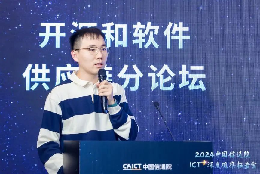 (图:中国信通院云大所开源和软件安全部高级业务主管张一阳发布+解读)
