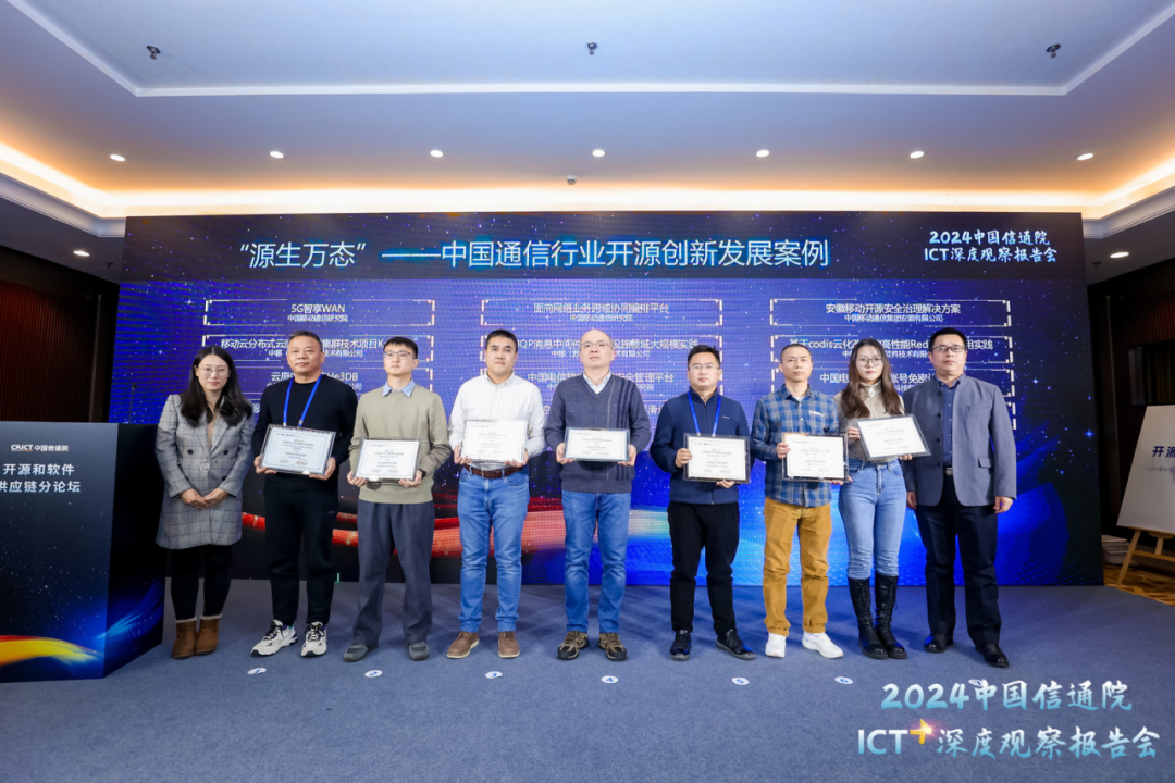 为进一步规范通信行业开源使用,中国通信学会开源技术委员会、中国信通院云计算开源产业联盟、“科创中国” 开源产业科技服务团联合发布《“源生万态”——中国通信行业开源创新发展案例集》,案例集共收录12家企业23个案例。中国信通院云大所开源和软件安全部主任郭雪和中国通信学会咨询部副主任张哲为入选案例集企业颁发证书。中国信通院云大所开源和软件安全部业务主管贾宇尘对《“源生万态”——中国通信行业开源创新发展案例集》进行解读,通过梳理通信行业开源技术应用、通信行业对外开源项目和通信行业企业开源治理三部分案例,我们能够较为全面的了解通信行业在开源领域的前沿动向和丰富实践经验。