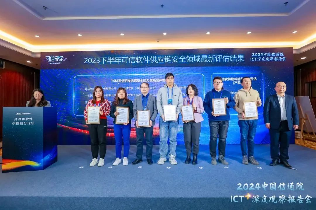 作为论坛的核心环节之一,中国信通院在本届论坛发布最新一批可信开源&可信安全系列评估结果,从开源治理、软件供应链安全、开源供应链、开源项目社区、云安全五个维度,建立一系列可信开源&可信安全标准体系,并落地评估测试,帮助企业降低软件使用风险,推动建立可信开源生态。