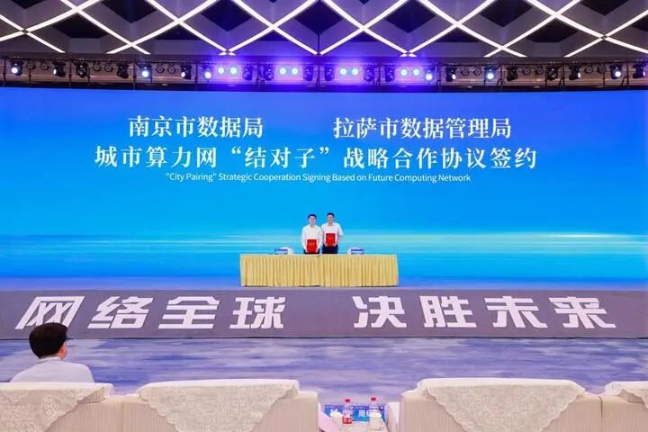 大会上,南京市数据局与拉萨市数据管理局城市算力网“结对子”战略合作协议签约,共同推进“东数西算”工程的深入实施和全国一体化算力网的加快构建。