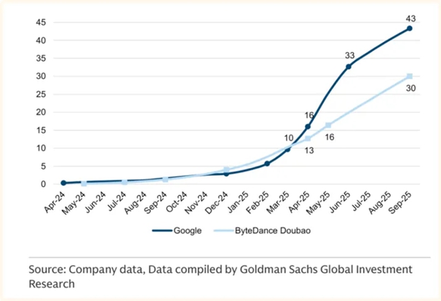 同时,中国大模型能力亦呈现了全面释放态势,中国在多模态、开源(超越美国世界第一)、推理等多个维度算力都呈现了显著的爆发趋势,其中,字节跳动(豆包大模型)最近报告显示,其用于AI推理的日均Token使用量在9月份已激增至30万亿以上,仅次于美国谷歌Gemini同期的43万亿。