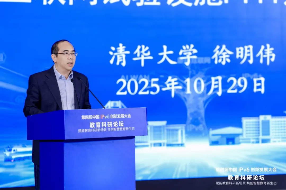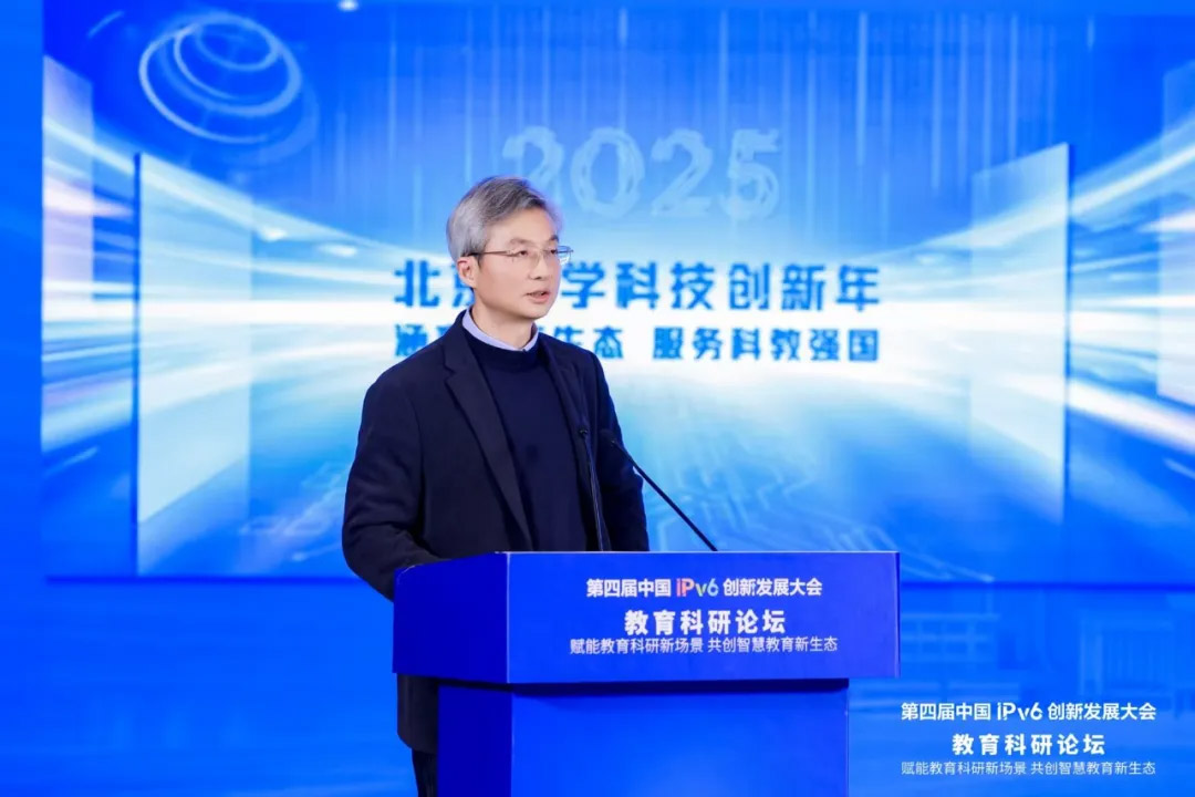 10月29日,第四届中国IPv6创新发展大会教育科研论坛在京成功举行。论坛以 “赋能教育科研新场景,共创智慧教育新生态”为主题,由推进IPv6规模部署和应用专家委员会指导,推进IPv6规模部署和应用专家委员会教育行业委员会主办,中国教育和科研计算机网CERNET网络中心、赛尔网络有限公司承办,中国互联网协会学术工委会协办。来自教育部、高校、科研机构及企业的200多位领导、专家齐聚一堂,共同探讨了教育科研领域IPv6下一代互联网技术应用创新与协同发展等重要议题。