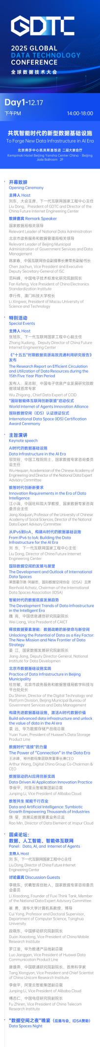 以上是本届大会的首日日程,GDTC大会不仅将为与会者搭建了一个深入了解数据技术最新发展动态与趋势的前瞻性平台,更是一个促进国际交流合作、推动数据技术产业发展的难得机遇。我们热忱邀请全球数据技术领域的专家学者、企业代表以及行业精英参与此次盛会,期望能与各位携手,共同见证并推动数据技术的发展与创新,为数据技术的发展注入新的活力,为全球数据基础设施的建设贡献力量。