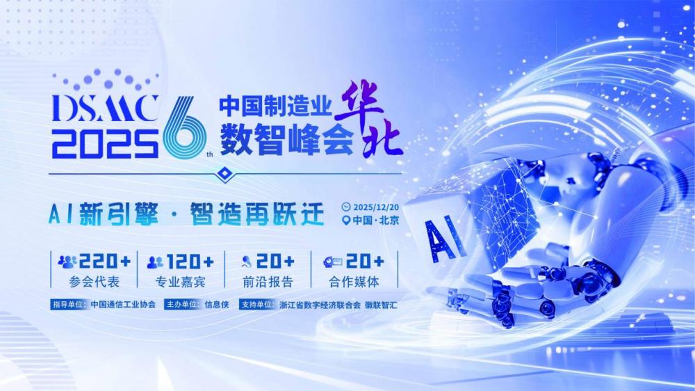 DSMC 2025第六届中国制造业华北数智峰会于12月20日在北京厦航嘉年华酒店圆满收官!本届大会由中国通信工业协会指导,信息侠主办,浙江省数字经济联合会、徽联智汇鼎力联合协办,以AI新引擎·智造再跃迁为核心主题,汇聚220+ 位行业精英、120+制造业专家及企业掌舵人,共同擘画华北地区制造业数智化转型的全新蓝图。