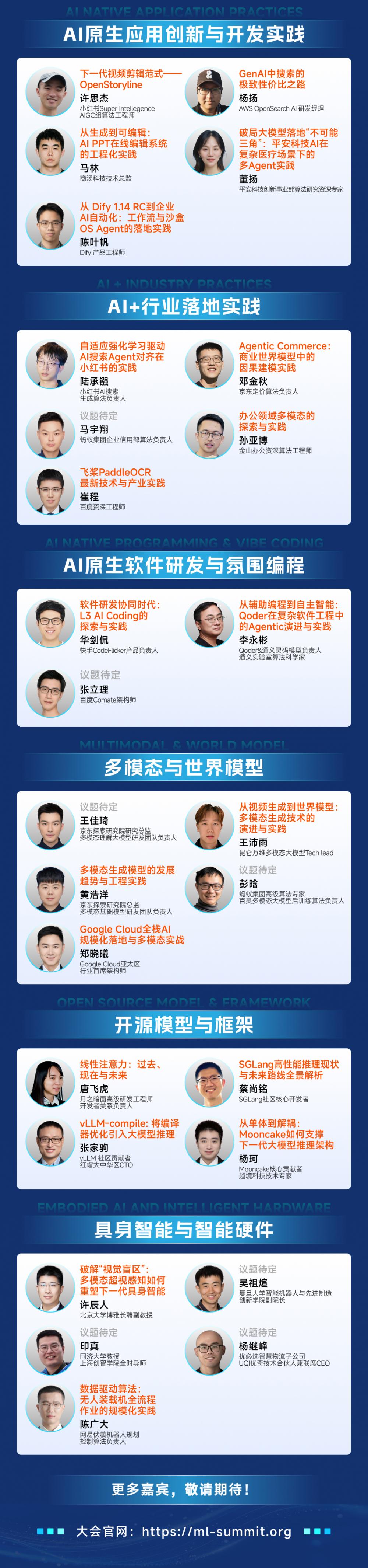 本次大会将深入探讨从多模态到世界模型、AI 原生研发到 AI Infra 基础设施与运维、大模型系统架构、Agent 系统与工程等 12 大前沿专题,旨在为穿越这场“十倍速变革”绘制一份兼具前瞻性与实战性的认知地图。