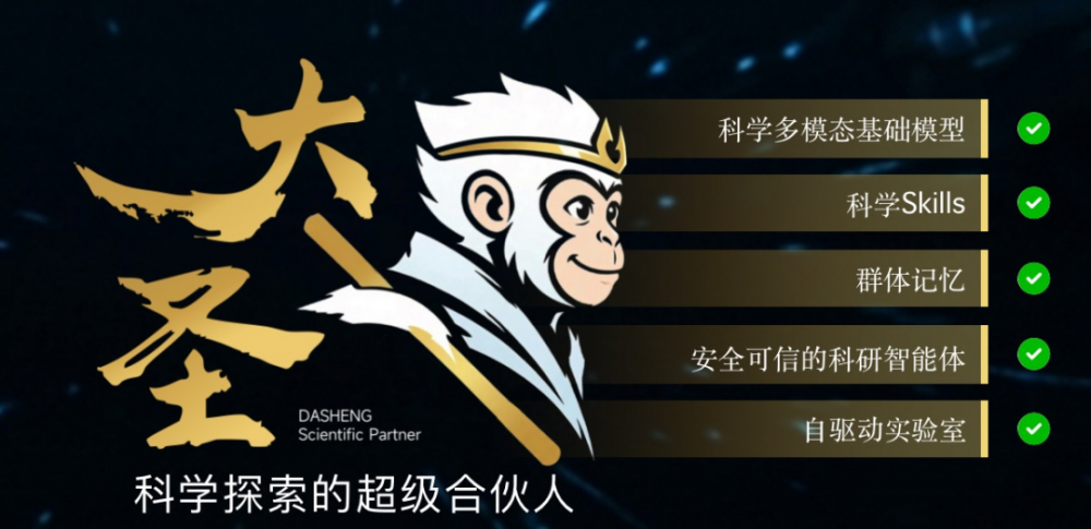 生物医药博士庄凯,利用AI重构酶筛选流程,让AI挖掘和设计所需蛋白质并大幅缩小实验范围,起步阶段仅需1个创始人加3个AI“员工”。复旦“伏羲”气象大模型、上海科学智能研究院联合复旦发布的超级科研智能体“大圣”,同样展示了AI如何让个人或极小团队驱动全流程科研突破。“大圣”以300余个技能包和自驱动实验室,实现"假设—实验—验证—迭代"的完整闭环,AI4S正在开创科学研究Agent驱动的“第五范式”。