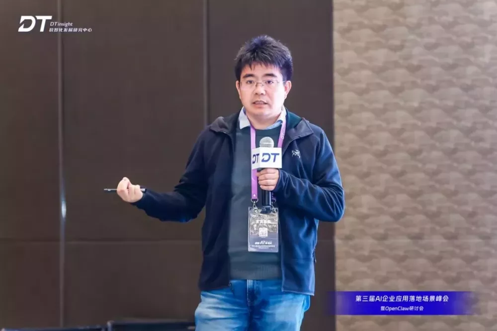 随后,蔚来汽车AI应用负责人杨广涛,在发表《Agent Harness:打造可靠的 AI 企业应用》的主题演讲中认为,在OpenClaw应用实践过程中,个人AI与机构AI应用效果存在显著差异,个人使用AI后效率提升明显,但企业整体效益并未同步增长。主要原因在于新技术的价值释放不仅取决于技术本身的应用,更依赖于生产组织方式的系统性变革。当前AI在企业中的落地,同样面临类似挑战,仅靠个人层面的效率提升不足以驱动企业级的生产力跃迁。