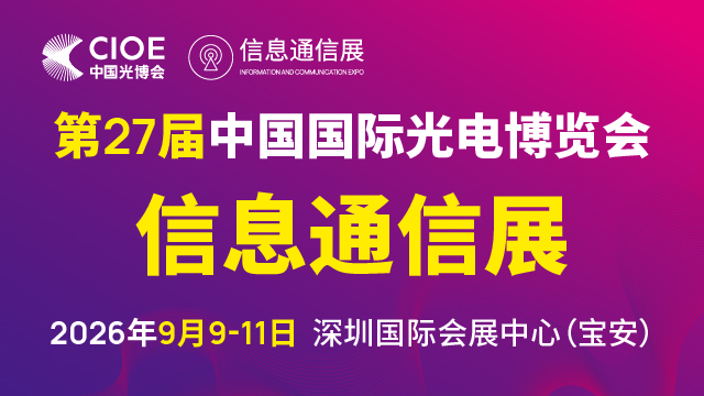 第二十七届中国国际光电博览会(CIOE中国光博会)将于2026年9月9-11日在深圳国际会展中心举办。作为覆盖光电全产业链的综合型展会,CIOE中国光博会汇聚了来自全球超30个国家和地区的超3800家的优质参展企业,八大主题展覆盖信息通信、精密光学、摄像头技术及应用、激光及智能制造、红外、紫外、智能传感、新型显示、AR & VR、光电子创新等板块, 是寻找研发和生产制造中所需要的材料、器件、设备及解决方案的一站式高效采购平台,也是精准商贸需求配对,快速拓展商业社交圈,把握行业发展前沿资讯和动态的商贸平台。