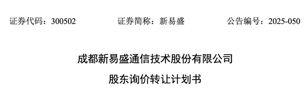 C114讯 10月6日消息(南山)日前,光模块上市公司新易盛公告了《股东询价转让计划书》。