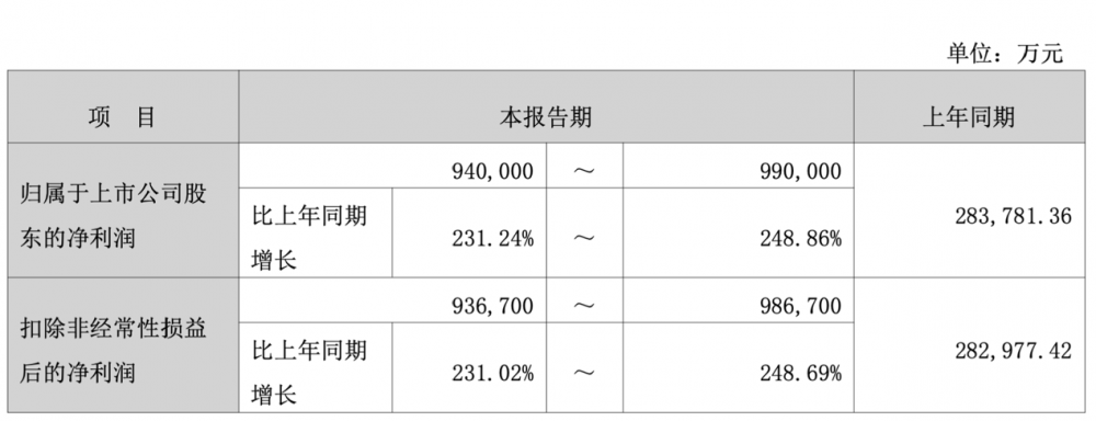 C114讯 2月2日消息(水易)近日,新易盛发布2025年业绩预告。报告期内,新易盛预计实现归属于上市公司股东的净利润94亿元-99亿元,同比增长231.24%-248.86%;扣非净利润93.67亿元-98.67亿元,同比增长231.02%-248.69%。