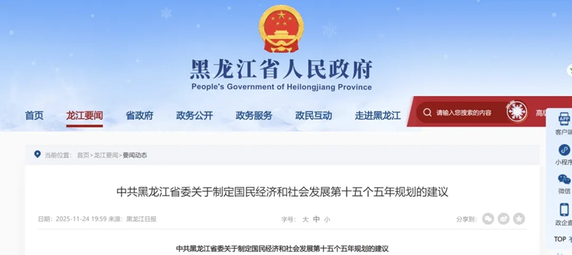 C114讯 12月3日消息(兰茜)近日,《中共黑龙江省委关于制定国民经济和社会发展第十五个五年规划的建议》(以下简称《建议》)全文公布。
