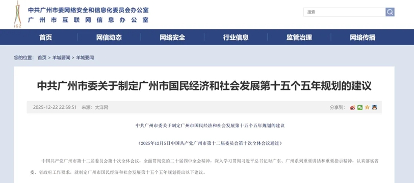 C114讯 12月24日消息(兰茜)近日,《中共广州市委关于制定广州市国民经济和社会发展第十五个五年规划的建议》全文公布(以下简称《建议》)。