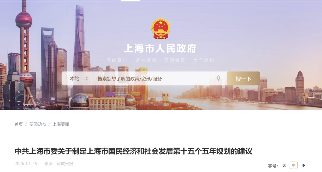 《建议》明确提出“十五五”时期上海经济社会发展的指导思想、必须遵循的原则和主要目标、战略任务和重大举措等,为未来五年上海发展描绘出清晰蓝图。