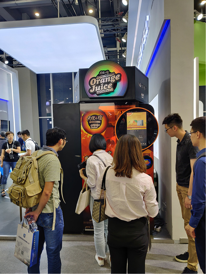 本次大会,移远还将创新的客户终端——“天使之橙”全自动智能鲜榨橙汁机带到了现场。该设备采用大屏触摸控制,支持联网、自动选择及移动支付等功能,消费者点击机身屏幕可选择想要的果汁杯数,扫码完成支付稍等片刻即可获得鲜美的果汁。购买全程方便快捷,而驱动这一切的正是移远模组SC60。