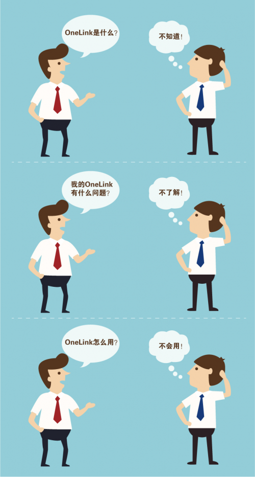 不会用:由于OneLink账号只会开放给客户使用,客户经理本身没有使用权限,造成部分客户经理不了解OneLink的功能,当客户咨询客户经理时,不能得到有效答复。