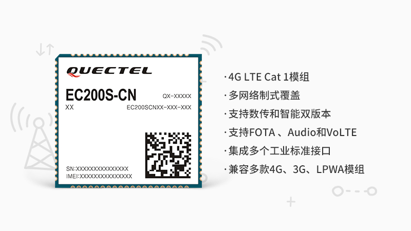 其中,移远Cat 1模组EC200S可支持最大下行速率10Mbps和上行速率5Mbps,覆盖2G、4G多网络制式,支持包括FOTA、Audio和 VoLTE在内的多种功能,集成USB 2.0等多个工业标准接口。该模组包括数传和QuecOpen两个版本,主要面向公网对讲、工业网关、智慧能源、共享经济、金融支付、可穿戴设备等中低速率应用场景。