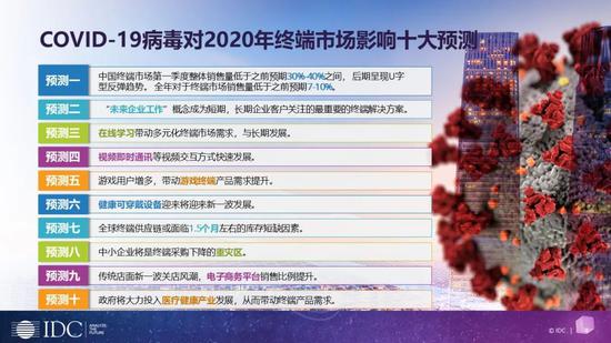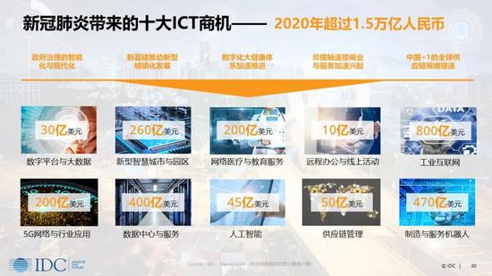 IDC预计,2020年与疫情相关的10个领域的ICT市场商机总计将超过1.5万亿人民币。
