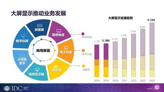 随着数字化转型的进一步深入,越来越多的用户已经认识到数据的重要性,并且意识到了使用数据进行展示的重要性。IDC在三年前提出“未来工作”这一概念,从空间、文化和员工(劳动力)三个方面解读了未来工作的发展方向,在这一大背景下,屏幕的重要性也更为突显。随时随地都在从传统的物理界面沟通方式转向数字界面沟通方式演变。IDC认为,Paneltoeverything已经到来。