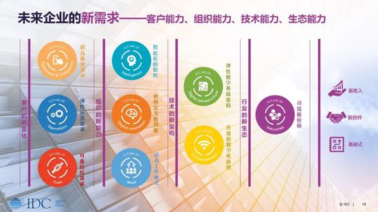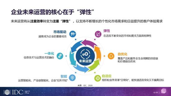 IDC于2019年提出“未来企业”的概念,共包括9大方面——未来客户与消费者、未来运营、未来信任、未来智能、未来数字创新、未来工作、未来基础架构、未来连接和未来行业。在现今整体ICT市场的大环境下,技术与业务再也密不可分。IDC“未来企业”概念九大方面的核心都是以技术支持业务的创新与发展,同时通过“数字化优先”的运营模式来打造未来企业。在这个背景下,催发了未来企业的新需求——客户能力、组织能力、技术能力和生态能力,企业组织需要结合自身现状并根据“未来企业“的九大方面来进行完善。在疫后抓住机遇,从而推动业务的发展。