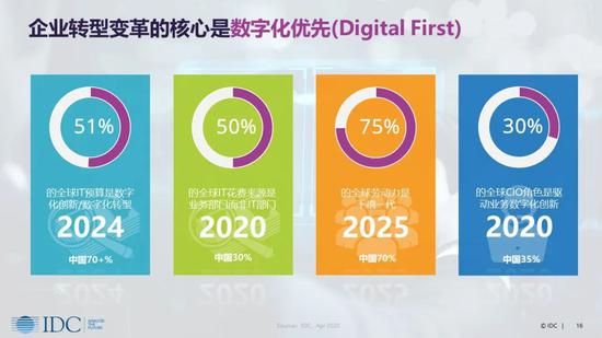 IDC预测,到 2024 年,51%的全球IT预算将来源于数字化创新/数字化转型,中国这一占比将超过70%。