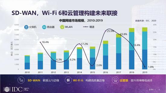 随着数字化的深入,数字化企业从联接数量、联接时间、联接方式以及联接要求几个方面对未来连接提出了更高的要求。SD-WAN,WiFi6和云管理将构建未来联接。SD-WAN解决云和边缘联接的问题;WiFi6解决边缘组网和无线化的问题。IDC预测,至2023年,WiFi6在中国无线AP市场出货量占比中将超过90%。同时,借助云管理将设备、网络、业务以及应用管理起来,从而达到提效、降本、增值的目标。未来联接将更加广泛、更高智能、更强体验,为未来企业打造智能数字化平台。