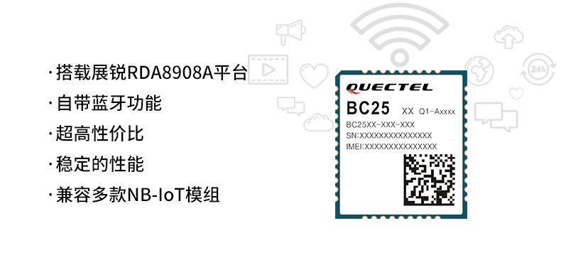 2019年初已量产的移远NB-IoT模组BC25搭载展锐RDA8908A平台,可兼容移远BC28和BC26等系列NB-IoT模组,凭借超高性价比和稳定的性能受到越来越多客户的青睐,在智能表计、智能烟感、智慧停车、智能家居等行业实现了大规模出货。