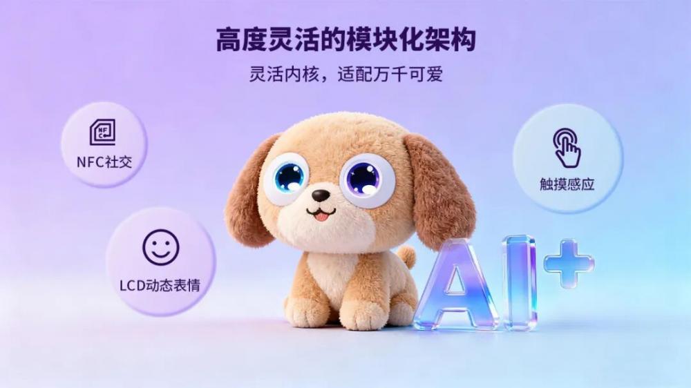 针对玩具市场“多品类、快迭代”的需求,Animator采用高度灵活的模块化架构,支持触摸感应、LCD动态表情、NFC社交等功能模块的自由选配。企业可以根据产品市场定位,快速适配低-中-高端毛绒玩具市场需求。