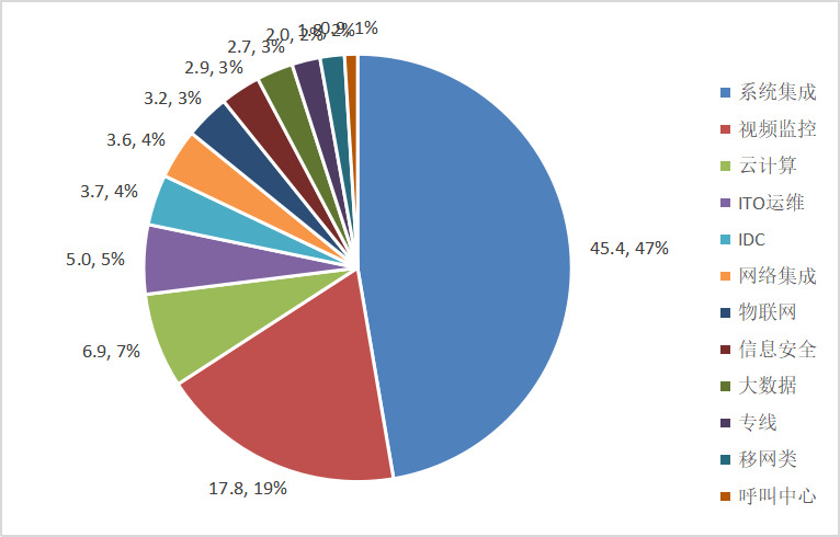 在运营商内部,项目类别集中在系统集成、视频监控、网络集成、专线。