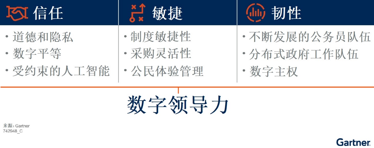 疫情所引发的变革让人们进一步认识到数字政务的一个重要宗旨:公共政策和技术是密不可分的。政策与技术的融合将数字领导力由首席信息官全权负责转移到政府官员所期望的高管层治理议程上。可见,数字领导力是政府的基本业务趋势。有效的数字领导力对于把握和降低其他任何业务趋势所带来的机遇和风险都至关重要。相反,薄弱的数字领导力会加剧紧张局势,使政府无法发挥维护公民社会的作用。