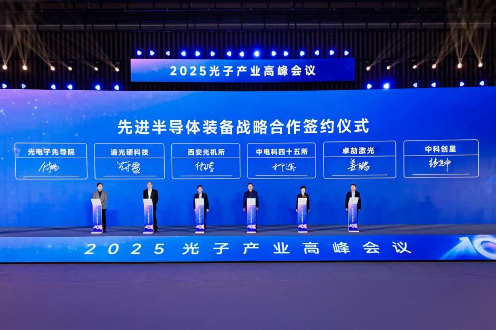 会议也举行了先进半导体装备战略合作签约仪式。中国科学院西安光机所、中国电子科技集团公司第四十五研究所、西安追光硬科技创业投资管理有限公司、中科创星、陕西光电子先导院科技有限公司、广东卓劼激光科技有限公司等单位将加强合作,进一步完善光子产业链上游核心环节。