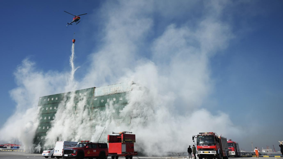 演练指令一下,模拟火场瞬间“硝烟”弥漫。