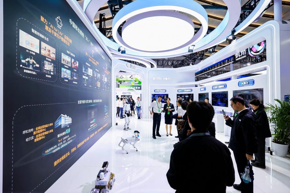 记者在中国移动展区了解到,当前,中国移动正全面推动数智设施升级,强化AI+能力供给。在网络演进方面,推进5G-A与6G新技术,打造智慧光网。建成全球规模最大的“双千兆”网络,5G-A网络覆盖全国所有城市,建成全球规模最大、覆盖最广的400G全光省际骨干网络,建成1-5-20ms三级时延圈,有效满足AI时代广连接、强交互、高算力需求;在算力网络方面,推动云和AI深度融合的“云智算”升级,实现“东数西算”八大枢纽节点AI算力全覆盖,建成14个智算中心节点,算力规模高达41FLOPS。