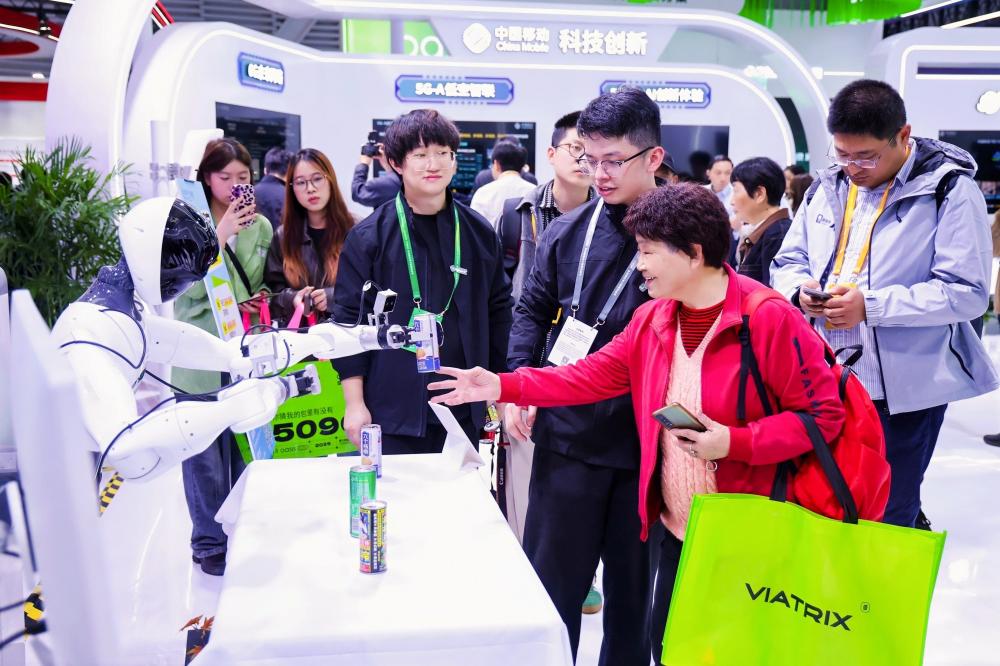 在互联网之光的中国移动展区,九天通专大模型体系、九天焕新平台、Agent+一体机等展项备受关注。“通过这些平台,AI技术转化就能变成‘即取即用’的服务,大幅降低AI使用门槛,可以大幅助力各行各业通过AI转型能拥抱智能变革。”展区工作人员介绍道。