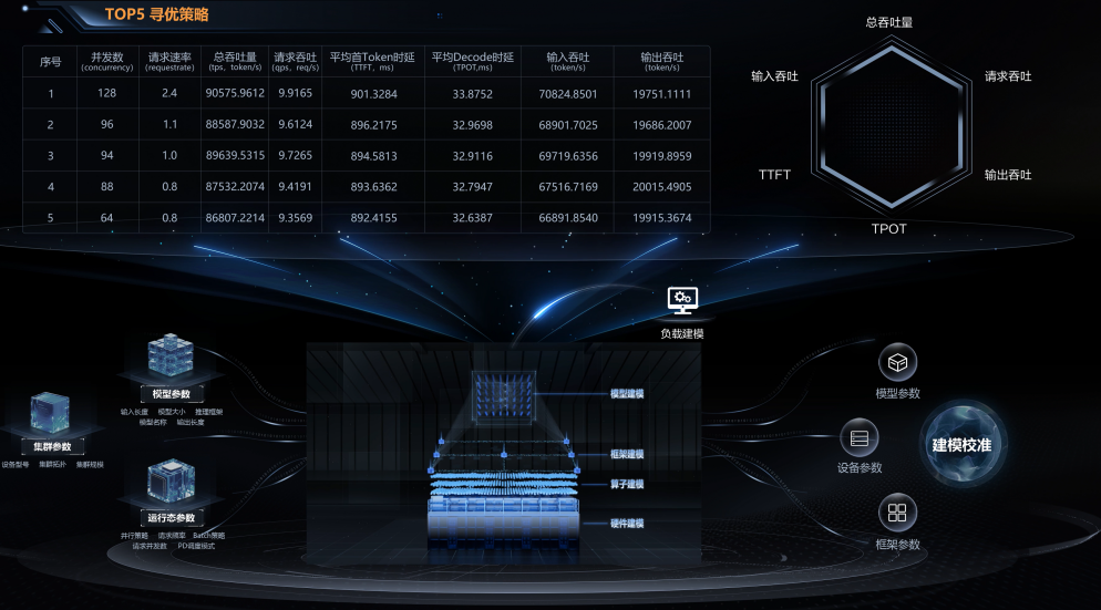 参数自主调优:在业务调试阶段,对从网络层到应用层的七层架构进行7维智能建模仿真,覆盖60+指标与3大场景开展高精度仿真,小时级完成最优参数组合筛选,较人工调优效率提升8倍,大幅提升问题解决效率。