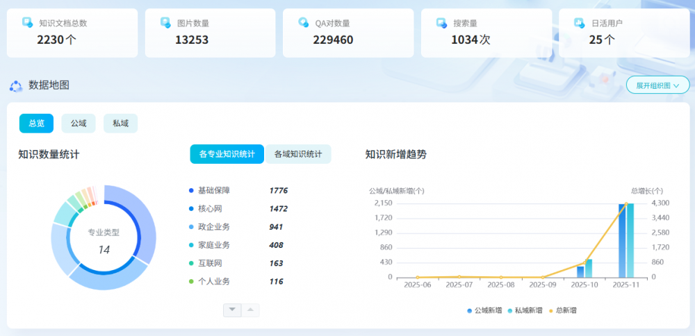 浙江移动自主研发了网络运维语料数据使能平台,大幅降低语料处理的人工成本,内容涵盖 14个专业类型,包括 2,230个知识文档、13,253张图片 及 229,640条QA对