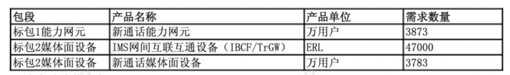 标包1:新通话能力网元NCP,中标数量为3-4家。