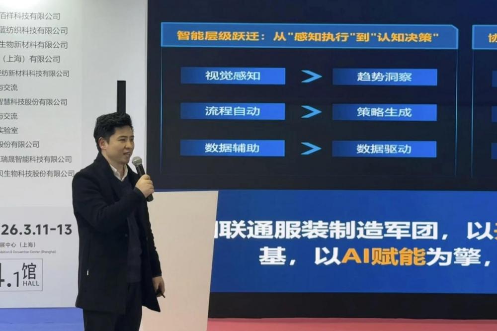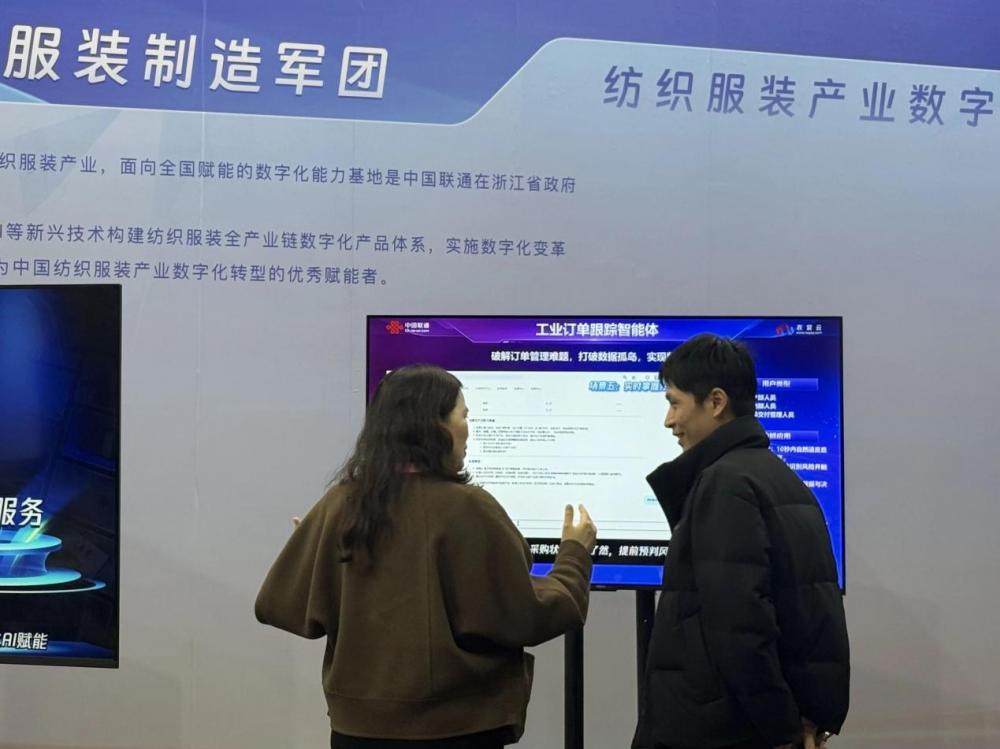 据中国联通服装制造军团副总监李永杰介绍,在与大量服装企业交流中,服装军团发现企业数字化转型中普遍面临“投入产出比不清晰”、“数字化人才匮乏”以及“系统操作复杂”三大痛点。为此,服装军团本次重点展示了三款 AI+ 行业产品,以简洁操作解决实际业务问题,助推服装产业链数智化升级。