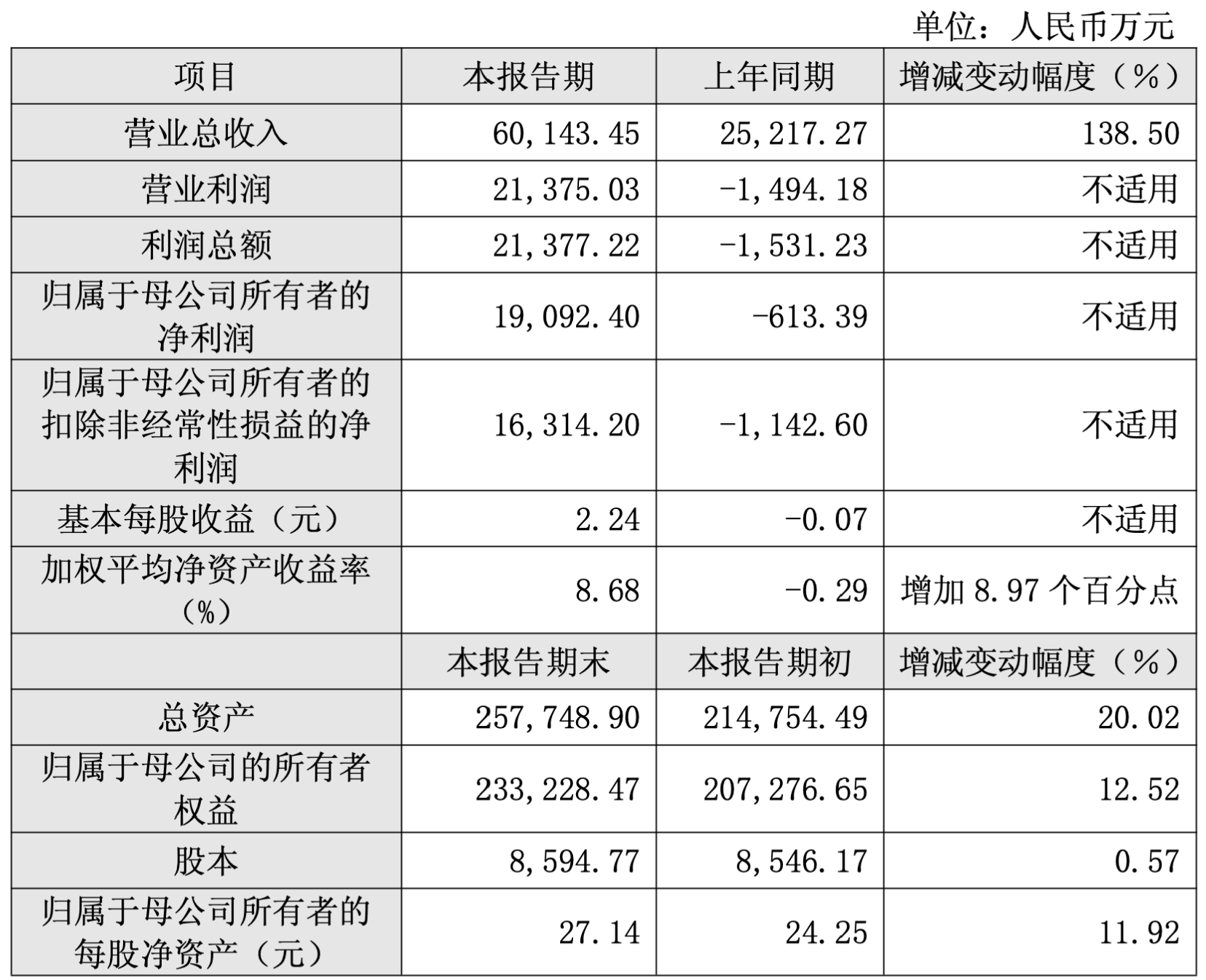 C114讯 2月28日消息(水易)昨日,源杰科技发布2025年度业绩快报。报告期内,源杰科技实现营业收入6.01亿元,同比增长138.50%;营业利润为2.14亿元,利润总额为2.14亿元,归属于母公司所有者的净利润为1.91亿元。