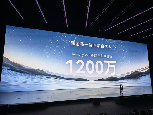 C114讯 8月25日下午消息(蒋均牧)华为常务董事、终端BG董事长余承东今日在智界及问界秋季新品发布会上宣布,搭载HarmonyOS 5的终端设备数量突破1200万。在这一历史性时刻,他感谢每一位开发者、伙伴和消费者的共同托举,让鸿蒙生态走向正循环。