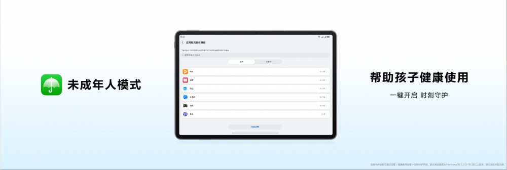 除了丰富的学习功能,华为MatePad 11.5还内置“未成年人模式”,辅助家长管理孩子的学习过程。该模式下,家长可统一管理屏幕使用时间、应用权限与内容访问,定制适合孩子的网络环境;更能通过“远程守护”功能,在手机端实时查看设备位置与状态,并远程完成各项设置,帮助孩子在自律中平衡学习与娱乐,实现健康成长。
