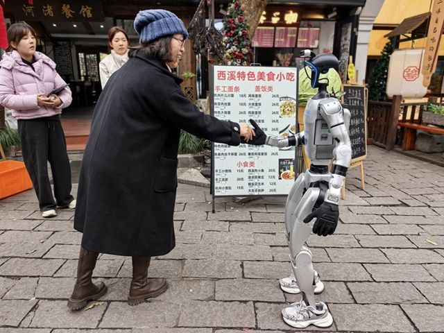 西溪湿地5G-A大上行示范区,正是这一生态的微缩展示。在望江楼起点,AI具身导览机器人“小天”能够听懂语音指令,流畅地进行导览。其背后,是5G-A大上行技术将机器人的视觉、听觉数据实时上传至云端“大脑”,经过推理后即刻下发控制命令,实现了低时延语音交互的类人流畅感,以及多模态感知协同下的引导与自主跟随能力。