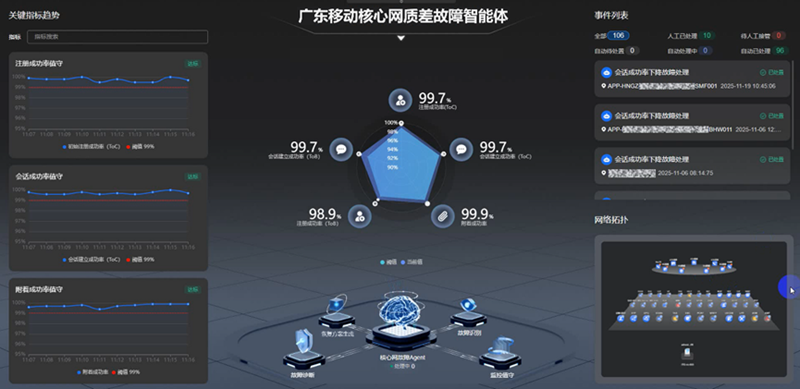 为贯彻落实中国移动集团“AI+”战略,广东移动与华为协同推进网络运维智能化转型,共促产业数智化升级。2024年11月,广东移动引入华为ICNMaster MDAF核心网故障处理智能体,并于2025年4月全面融入生产运营流程,与工单系统有效协同,实现设备告警故障工单的自动诊断定界。截止2025年12月底,累计处理18000+设备告警工单,工单诊断处理时长从43分钟缩短至5分钟,诊断覆盖率达到95%以上,有效提升了运维效率。