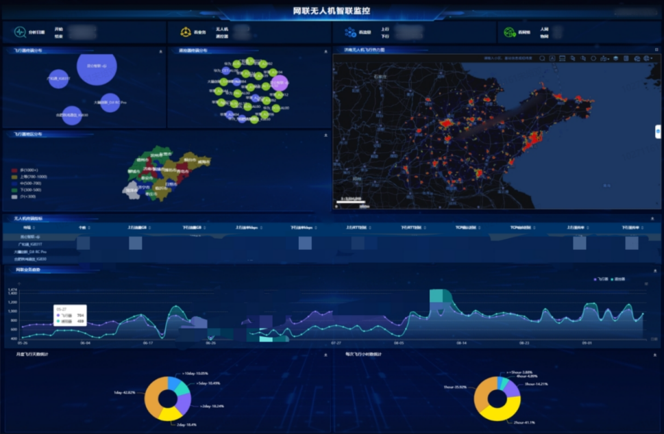 作为国家战略性新兴产业,低空经济的快速发展既带来了广阔的机遇,也伴随着技术标准、安全保障等挑战。在此背景下,山东移动与中兴通讯联合构建了一个"可视、可联、可管、可控"的立体保障体系。该体系通过4+3+N布局低空智联网,整合了4/5G DPI(深度报文检测)、无人机管理平台、基站感知等多源数据资源,实现了对网联无人机从精准识别、精确定位到业务保障及行业深度赋能的全流程闭环管理,成功攻克了无人机网络运维中长期存在的“盲管”难题。