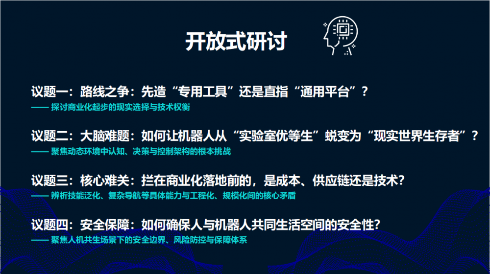 开放研讨环节更显深度与锐度。在中兴通讯机器人研发总工程师刘彪的主持下,与会专家围绕四大核心议题展开了激烈而富有建设性的思辨: