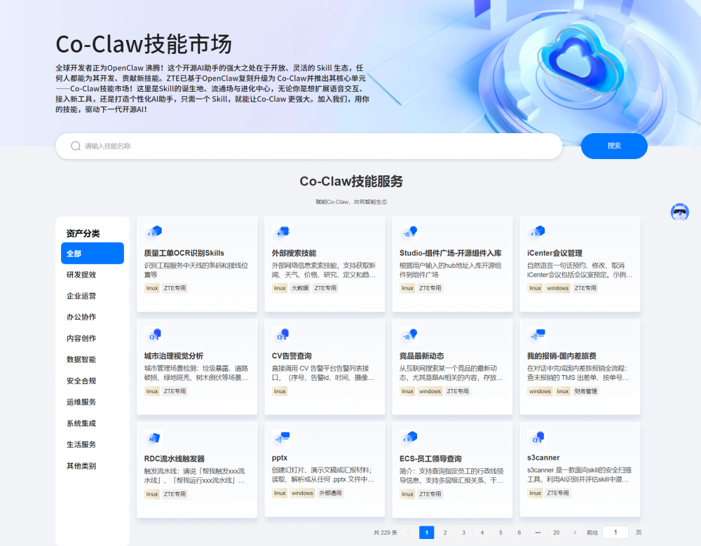在传统场景中,以往各部门各自为政,研发有研发的助手,市场有市场的工具,不仅造成了严重的重复建设,还导致能力碎片化。中兴通讯Co-Claw构建了MaaS服务广场,模型免购买、API key一键生成,高可用、流量监控,提供落地体验保障。同时,Co-Claw 构建了统一的 Skill 广场,各大部门均可快速上传自己创立的skill,将复杂的数据分析、工作流封装成标准化技能,使用量、节省工时、Skills 调用热度、模型调用成本,都被纳入统一可视。