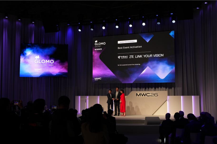 2026世界移动通信大会(MWC26)期间,中兴通讯、中国电信联合直转播服务商荣泽天韵在浙江杭州打造的“5G-A 赋能无线新模式演唱会直播”项目,荣膺GSMA 全球移动大奖(GLOMO)“最佳活动营销奖”。这标志着5G-A在演唱会直播行业的成功商用,为赛事展演、文娱活动、教育教学等直播场景注入了规模化转型的强劲动能。