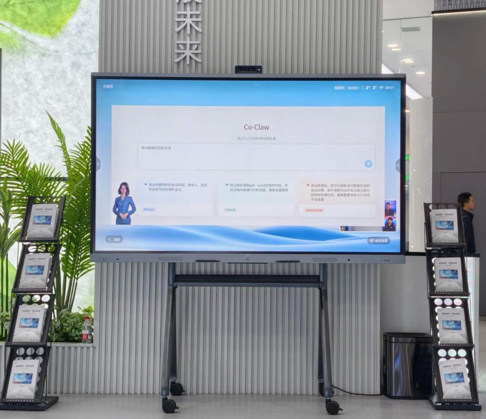 “龙虾版”智会屏深度融合Co-Claw企业级AI智能体能力,将智能助理全面拓展至会议全程。会前,用户只需通过自然语言指令,即可完成会议预约、参会人员邀请及日程同步,系统自动协调多方时间,智能推荐最优时段。
