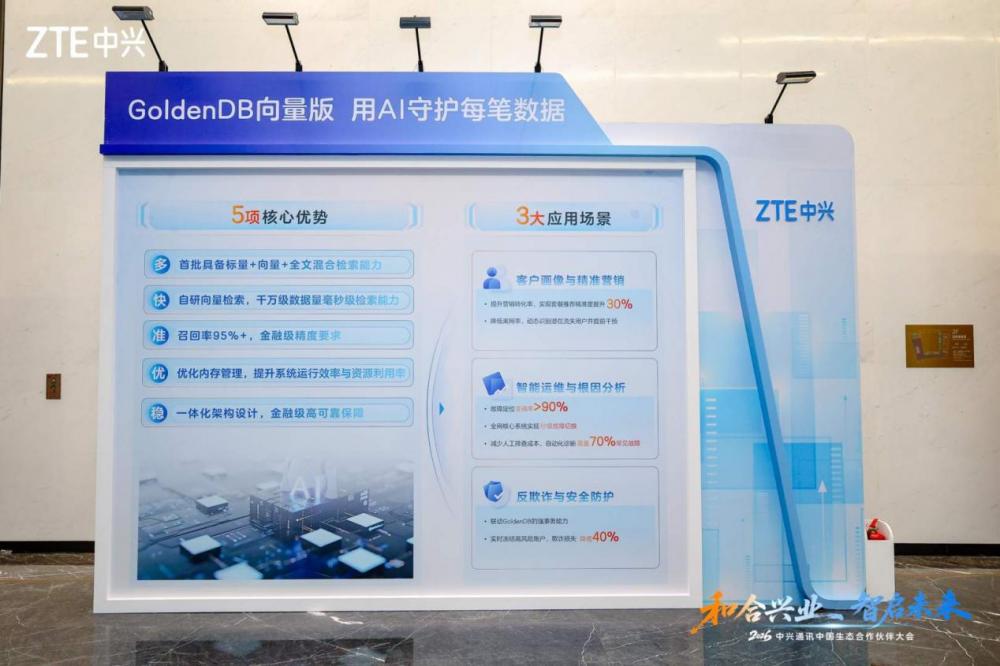 4月9日,中兴通讯GoldenDB向量版正式发布,这是GoldenDB依托20余年数据库研发积累打造的、面向AI时代的向量数据库,深度适配人工智能浪潮下数据处理体系的变革需求,是国内首批具备标量+向量+全文混合检索能力的数据库产品,为金融、运营商等重点行业的智能化转型提供高可靠的数据库基础软件。